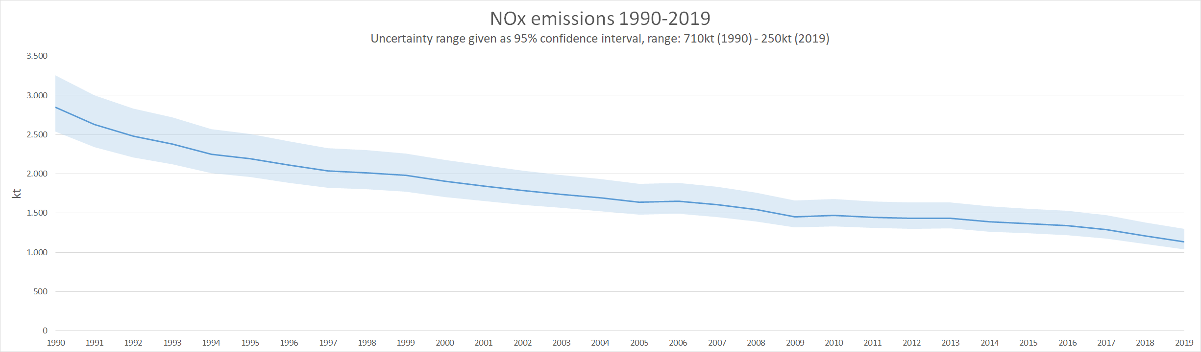 The sections below detail pollutant specific uncertainty interpretations and show the values in the context of the pollutant's emissions and trends.