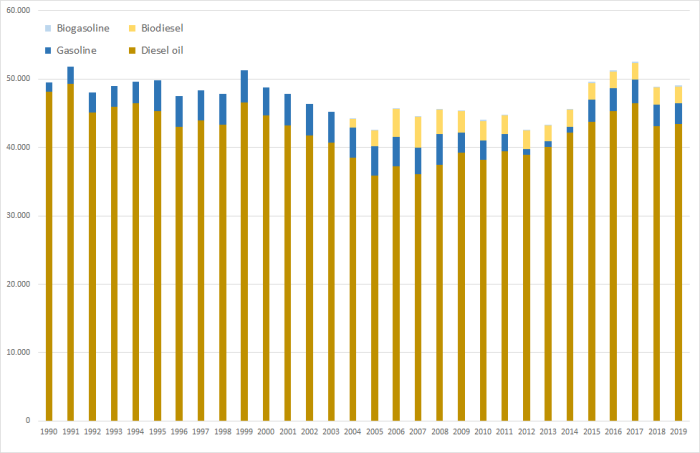 > NOTE: The remarkable increase in gasoline consumption after 2014 relates to the strongly increased inland deliveries reported in NEB line 67.