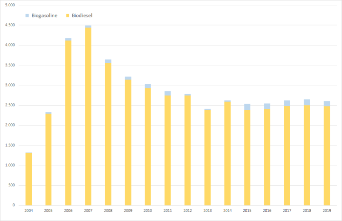 | Biodiesel | 0 | 0 | 0 | 2.293 | 2.926 | 2.749 | 2.748 | 2.377 | 2.588 | 2.390 | 2.401 | 2.482 | 2.505 | 2.473 |