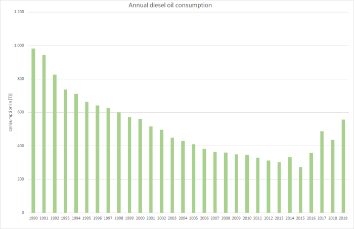 | Diesel Oil | 983 | 665 | 563 | 410 | 383 | 366 | 360 | 349 | 347 | 330 | 313 | 302 | 332 | 273 | 359 | 489 | 436 | 558 |