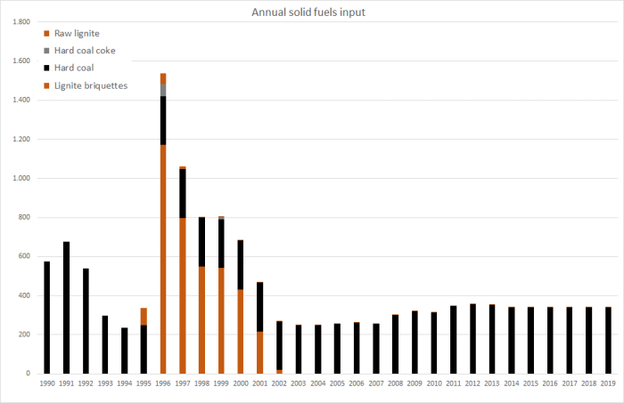 | Hard coal | 1990-1994: NEB lines 74; 1995-2004: interpolated data; from 2005: original data from studies; 2016: forward extrapolation |