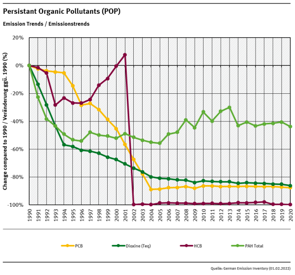 The figure below shows trends for the main groups of persistent organic pollutants: