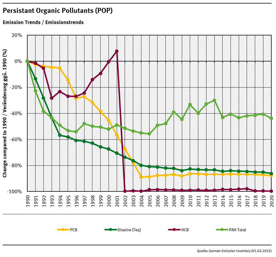 The 1998 Aarhus Protocol on Persistent Organic Pollutants under the CLRTAP entered into force late in 2003. It focuses on a list of 16 substances that have been singled out according to agreed risk criteria. The substances comprise eleven pesticides, two industrial chemicals and three by-products/contaminants. The ultimate objective is to eliminate any discharges, emissions and losses of POPs. The Protocol bans the production and use of some products outright (aldrin, chlordane, chlordecone, dieldrin, endrin, hexabromobiphenyl, mirex and toxaphene). Others are scheduled for elimination at a later stage (DDT, heptachlor, hexaclorobenzene, PCBs). Finally, the Protocol severely restricts the use of DDT, HCH (including lindane) and PCBs. The Protocol includes provisions for dealing with the wastes of products that will be banned. It also obliges Germany to reduce its emissions of dioxins, furans, PAHs and HCB below their levels in 1990. For the incineration of municipal, hazardous and medical waste, it lays down specific limit values.