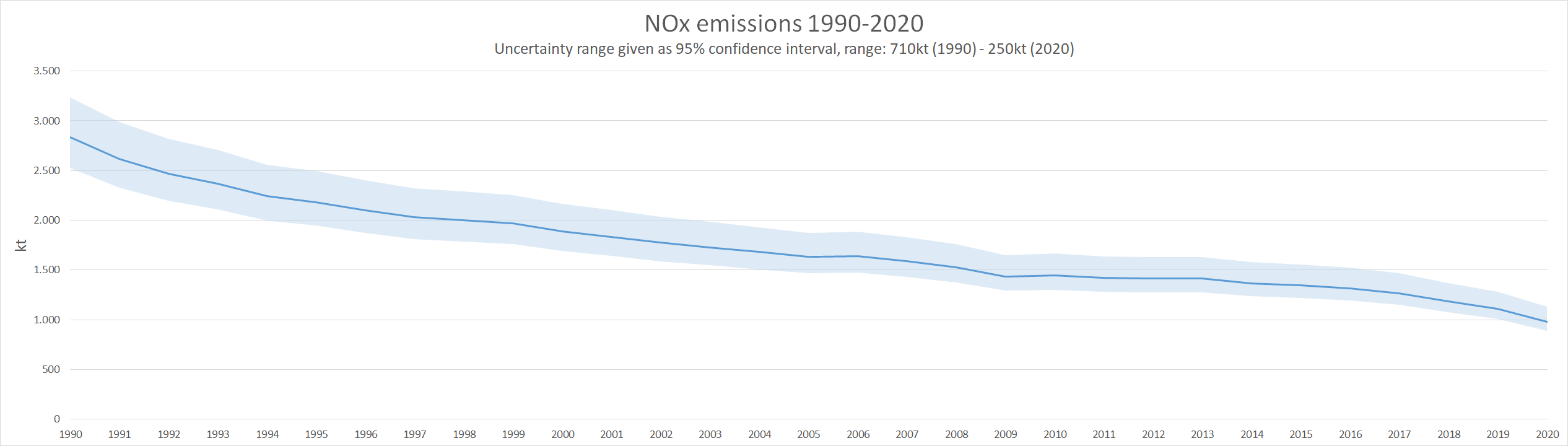 The sections below detail pollutant specific uncertainty interpretations and show the values in the context of the pollutant's emissions and trends.