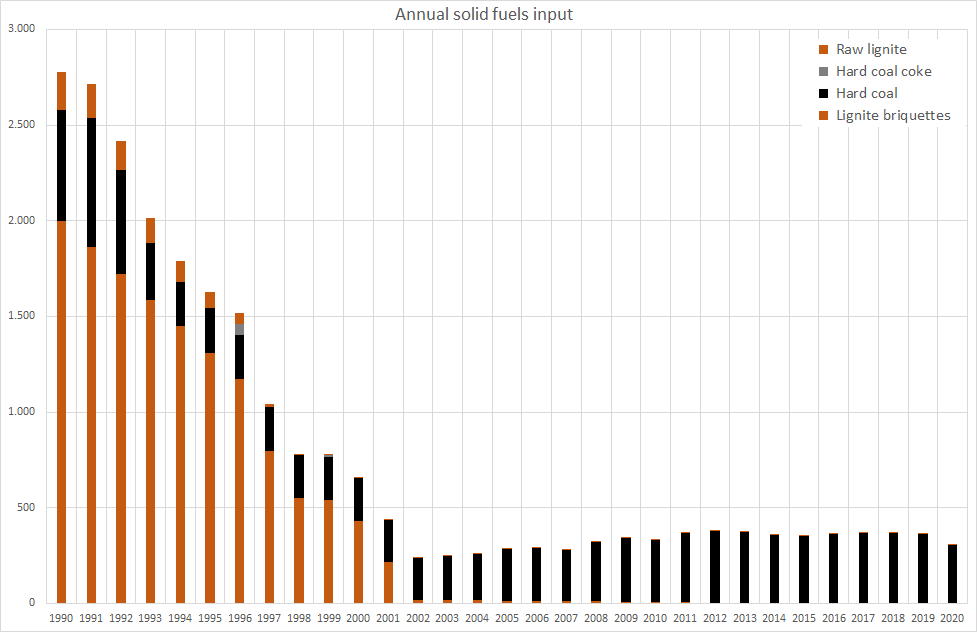 Small quantities of solid fuels are used for historical steam engines vehicles operated mostly for tourism and exhibition purposes. Official fuel delivery data are available for lignite, through 2002, and for hard coal, through 2000, from the NEBs. In order to complete these time series, studies were carried out in 2012 3), 2016 4) and 2021 5). During these studies, questionaires were provided to any known operator of historical steam engines in Germany. Here, due to limited data archiving, nearly complete data could only be gained for years as of 2005. For earlier years, in order to achieve a solid time series, conservative gap filling was applied.
