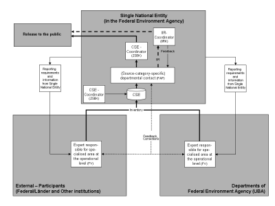 A Single National Entity (national coordinating agency), is responsible for the QC/QA system. The German Single National Entity is established in the German Environment Agency (UBA). In executing its function, it is good practice to establish the position of a coordinator for the Quality System to be developed. A QC/QA coordinator has responsibility for ensuring that a relevant QC/QA system is developed and implemented. Such implementation should be suitably institutionalised – for example, by means of an in-house directive or association agreement.
