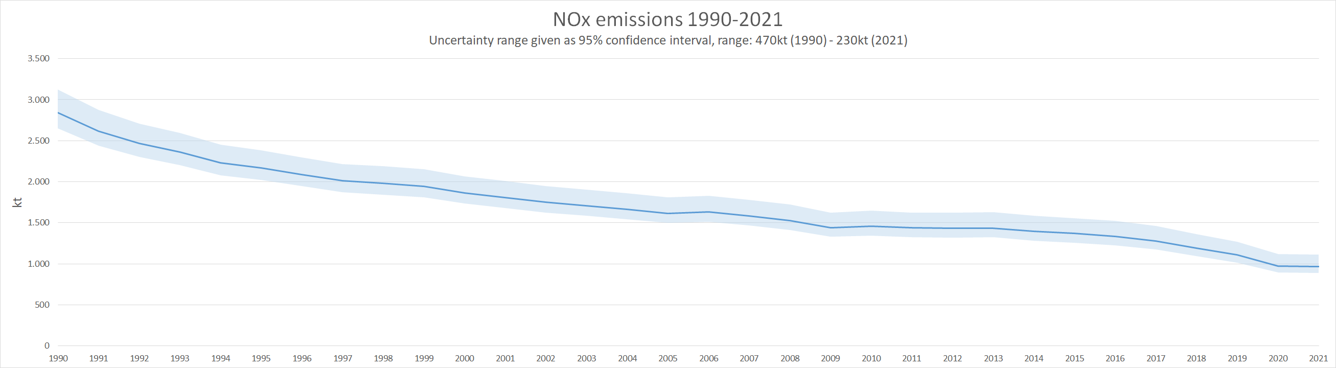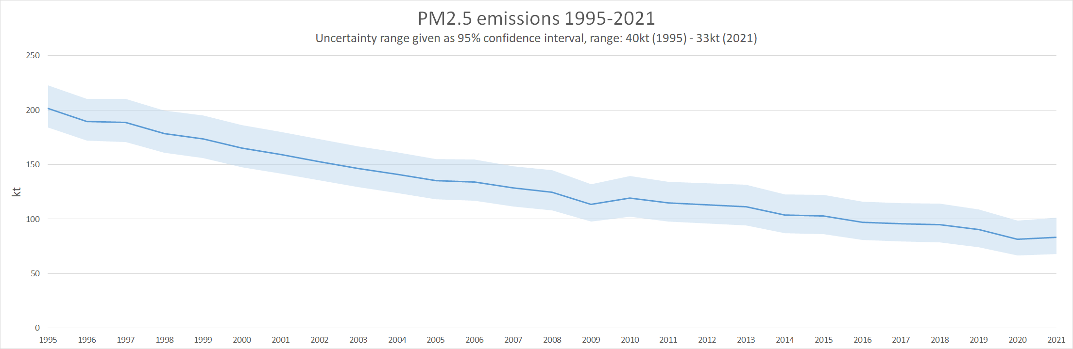 The sections below detail pollutant specific uncertainty interpretations and show the values in the context of the pollutant's emissions and trends.