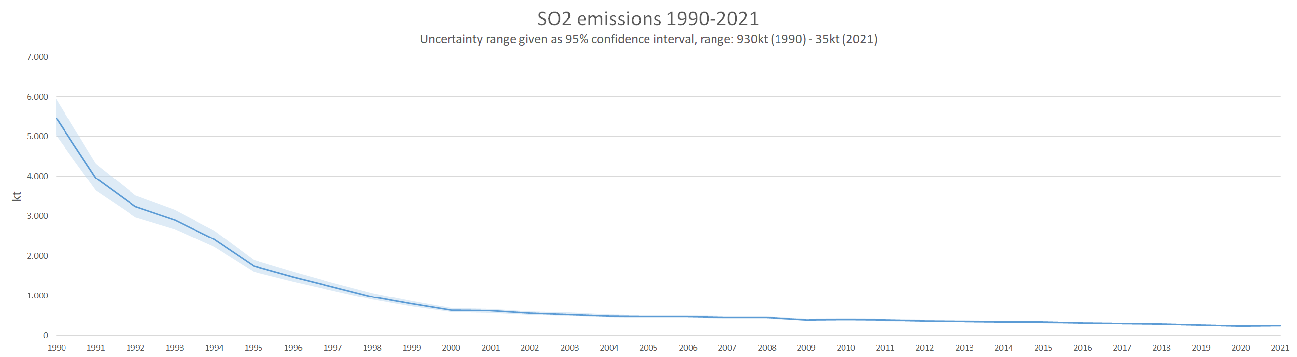 SO2 emissions are mainly emitted by stationary combustion plants. Since those are heavily regulated and fuel sulphur contents are generally well known, uncertainties in SO2 emissions are low. The national total has a 95% confidence interval of about -6.7% to +7.1% in 2021, which amounts to about 35kt of SO2. The top contributing sector to the SO2 uncertainties is 1.A.1.a - Public Electricity And Heat Production, followed by a rather big margin by 1.A.1.b - Petroleum Refining, 1.A.4.b i - Residential: Stationary Combustion, as well as 2.C.1 - Iron and Steel Production. All data is available in the spreadsheet file.