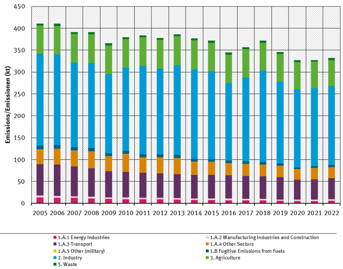 Between 1990 and 2021 the total TSP emissions dropped by 83.6%, mainly due to stricter regulations of the Old West Germany that applied to the New German Länder after the German Reunification and realized a change-over from solid to gaseous and liquid fuel, as well as advancements in filter technologies of combustion plants and industrial processes.