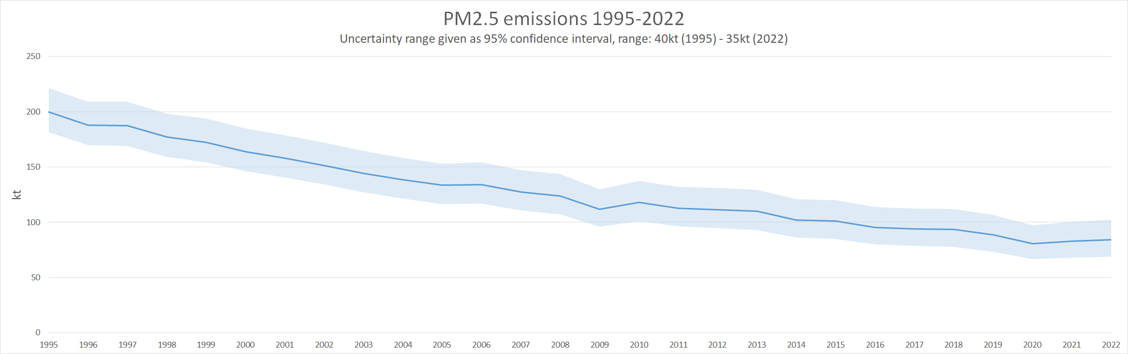 The sections below detail pollutant specific uncertainty interpretations and show the values in the context of the pollutant's emissions and trends.