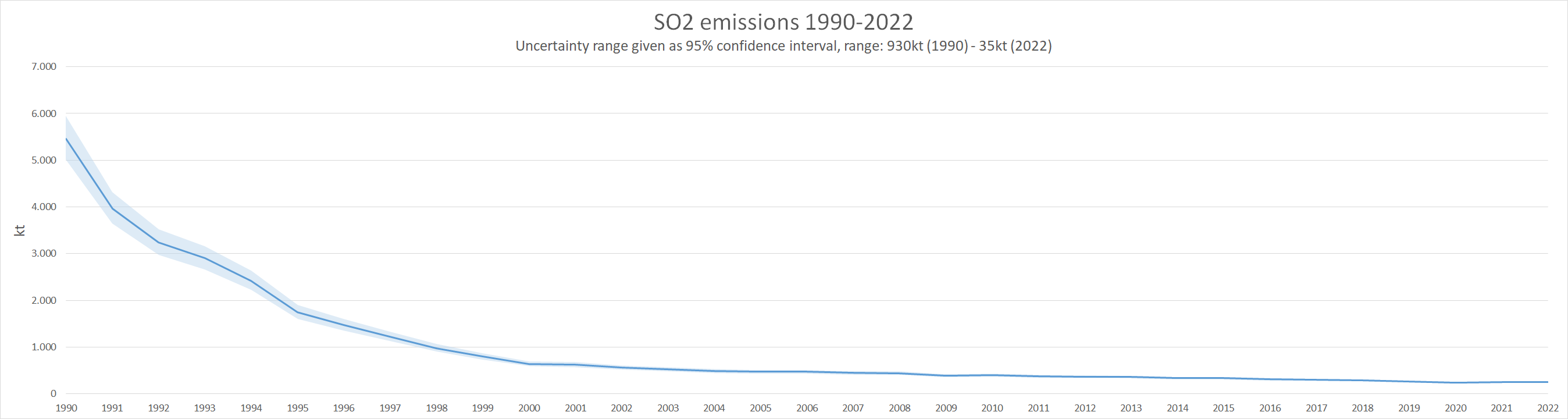 SO2 emissions are mainly emitted by stationary combustion plants. Since those are heavily regulated and fuel sulphur contents are generally well known, uncertainties in SO2 emissions are low. The national total has a 95% confidence interval of about -7.0% to +7.4% in 2022, which amounts to about 35kt of SO2. The top contributing sector to the SO2 uncertainties is 1.A.1.a - Public Electricity And Heat Production, followed by a rather big margin by 1.A.1.b - Petroleum Refining, 1.A.4.b i - Residential: Stationary Combustion, as well as 2.C.1 - Iron and Steel Production. All data is available in the spreadsheet file.
