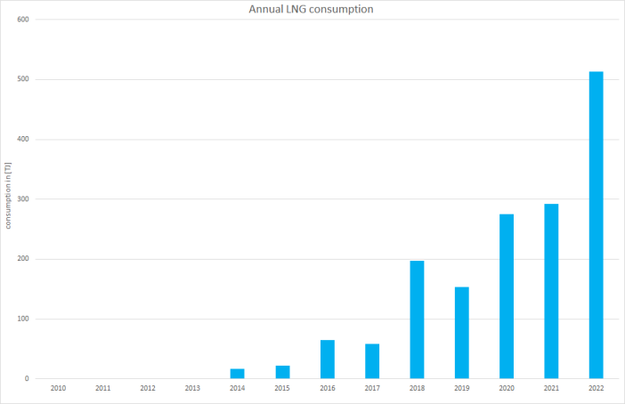 The small amounts of LNG used almost entirely in ferries are not yet included in the NEB but are estimated directly in the BSH model.