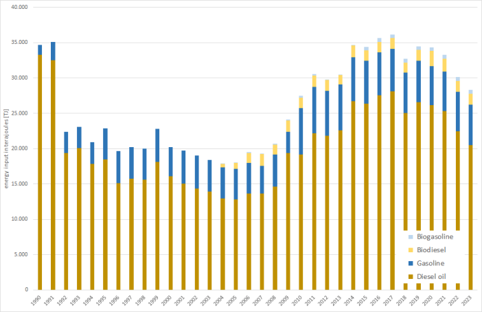 > NOTE: The remarkable increase in gasoline consumption after 2014 relates to the strongly increased inland deliveries reported in NEB line 67.