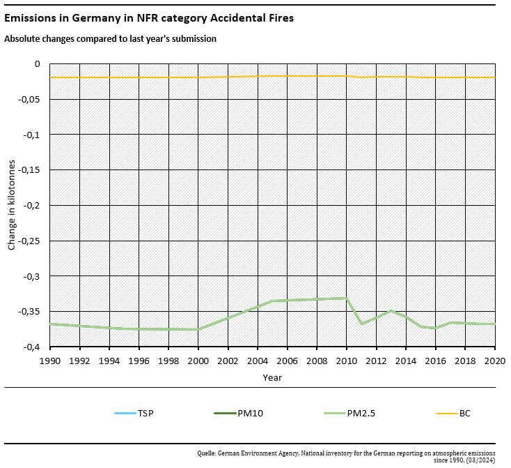 Recalculations were necessary due to correction of an Excel-error for container fires. The small changes can be shown as an absolute difference over time as follows: