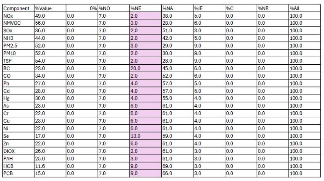 | 1.A.2.a | BC, Pb, Cd, As, Cr, Cu, Ni, Se, Zn, B[b]F, B[k]F, I[1,2,3-c,d]P | no country-specific tier2 EFs at hand; notation key 'NE' provided in EMEP/EEA GB 2023, Chapter 1.A.2 Combustion in manufacturing industries and construction 2023 , Tables 3-7 to 3-12 |