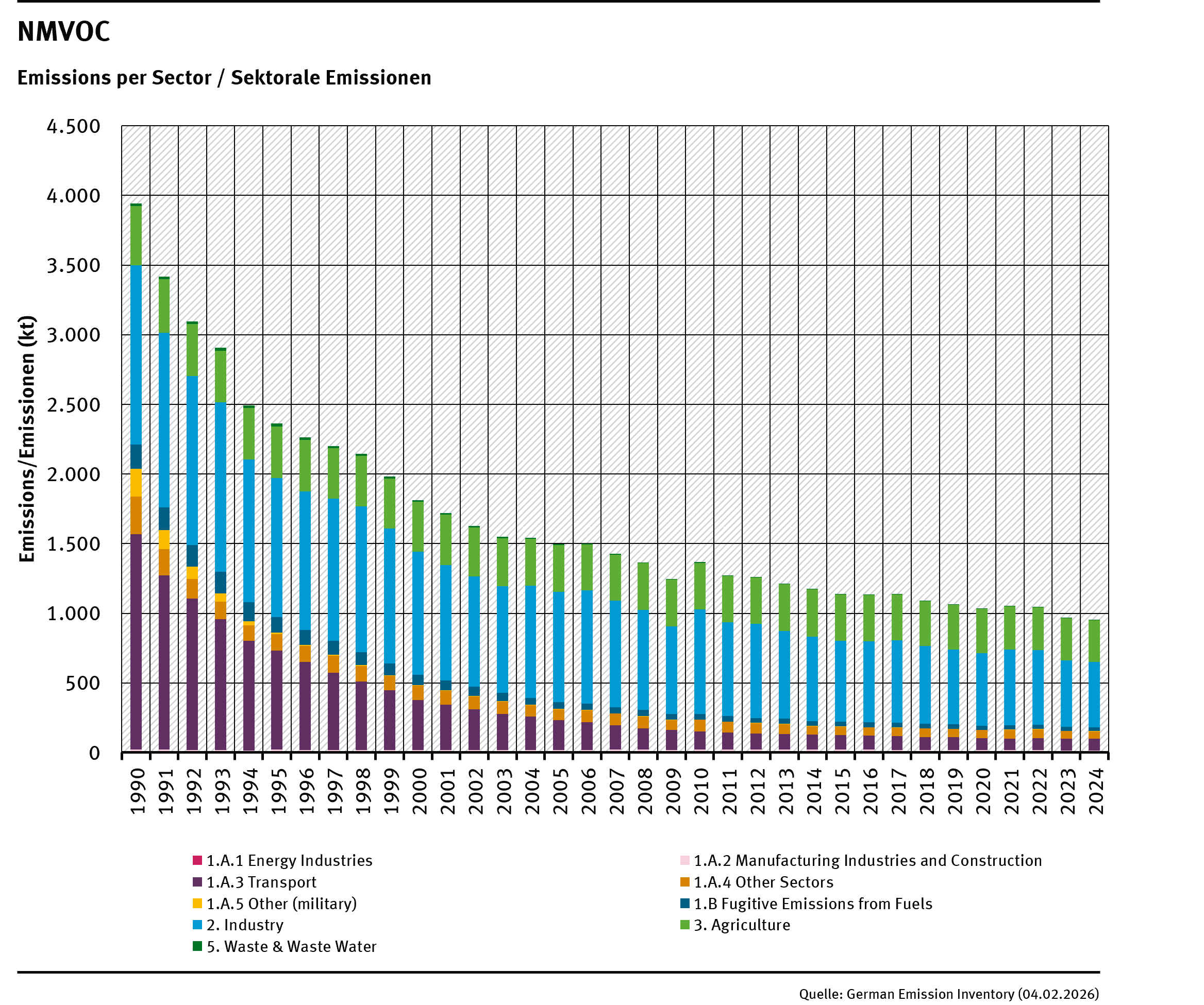 Table: NMVOC emissions 1990-2024, in kilotonnes [kt]