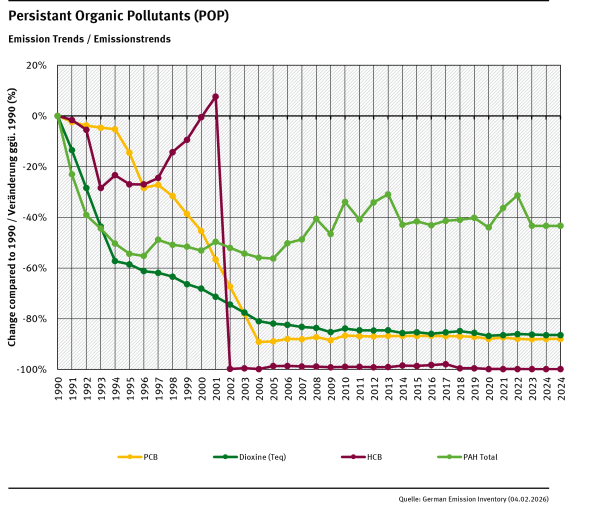 The 1998 Aarhus Protocol on Persistent Organic Pollutants under the CLRTAP entered into force late in 2003. It focuses on a list of 16 substances that have been singled out according to agreed risk criteria. The substances comprise eleven pesticides, two industrial chemicals and three by-products/contaminants. The ultimate objective is to eliminate any discharges, emissions and losses of POPs. The Protocol bans the production and use of some products outright (aldrin, chlordane, chlordecone, dieldrin, endrin, hexabromobiphenyl, mirex and toxaphene). Others are scheduled for elimination at a later stage (DDT, heptachlor, hexaclorobenzene, PCBs). Finally, the Protocol severely restricts the use of DDT, HCH (including lindane) and PCBs. The Protocol includes provisions for dealing with the wastes of products that will be banned. It also obliges Germany to reduce its emissions of dioxins, furans, PAHs and HCB below their levels in 1990. For the incineration of municipal, hazardous and medical waste, it lays down specific limit values.