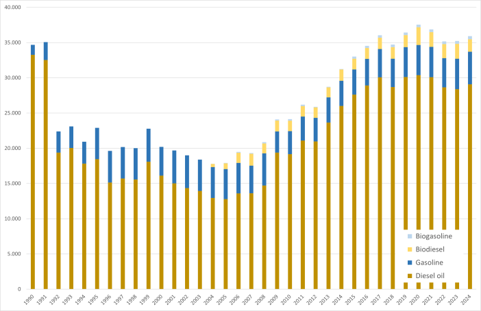 > NOTE: The remarkable increase in gasoline consumption after 2014 relates to the strongly increased inland deliveries reported in NEB line 67.