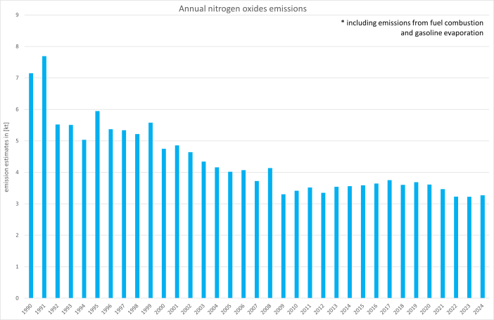 Here, as NMVOC emissions are dominated by gasoline fuels, the trend shows the same strong decline after 2011 as the underlying activity data (see above and NFR 1.A.4 - mobile, Table 1.) The remarkable increase after 2014 relates to the strongly increased gasoline inland deliveries reported in NEB line 67. (see table 3 above). This noticeable increase will be checked by the compiler of the National Energy Balance.