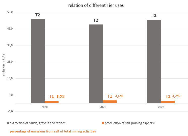 With respect to this limited scale of both activity and emissions, salt mining is considered too insignificant for the application of a higher tier (Please see trend discussion below). Therefore, in contrast to the mining/quarrying of sands and rocks described above, a tier1 approach based on information on production of salts and country-specific emission factors for TSP and PM is applied.