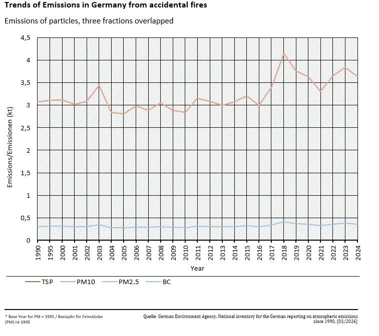 With a method for estimation the AD developed within a research project 1), and after publication of Tier2-EF within the EEA-Guidebook 2019 2), a country-specific method was implemented and further developed so that now a full-scale-approach for all Buildings and the cars as well as an estimation for waste container fires can be conducted.